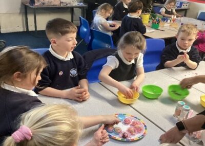 Children then took part in workshops where they were able to look at and try on traditional clothing, make coconut and date balls, as well as create special boxes to their tasty treats home. Children asked many questions of Yesmien to delve further into her experiences, as well as those of Muslims around the world.